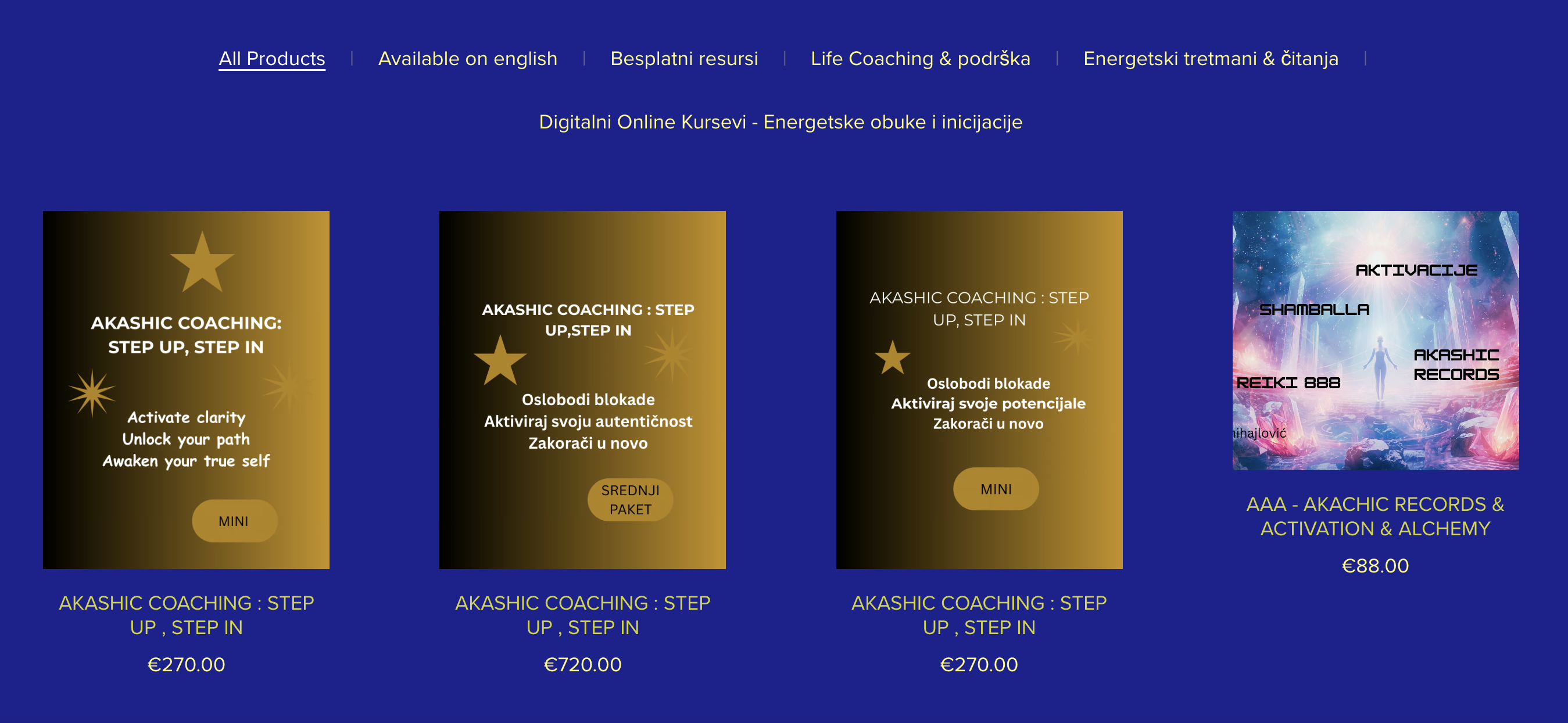 "Pohađajući Online Program Life Coach Certifikacije na Coaching Akademiji ‘Ajna’ i online grupni biznis coaching program koji vode Danijela Jokić Vaislay i Vanja Beukelman Pavlović, otvorila su mi se brojna vrata i mogućnosti. Još od februara, kada mi je stigao laptop i kada sam pokrenula svoju prvu PayHip online prodavnicu (web-trgovinu), moj put se potpuno promenio. Danas, početkom septembra, već imam 38 digitalnih produkata – od meditacija, različitih coaching usluga, do energetskih radova. Ono što mi je najviše značilo je to što Danijela i Vanja nude jasne, korak-po-korak alate i upute za pokretanje samostalnog biznisa, kao i veliku tehničku podršku putem snimljenih lekcija – baš ono što mi je nedostajalo. Neizmijerno sam im zahvalna!"